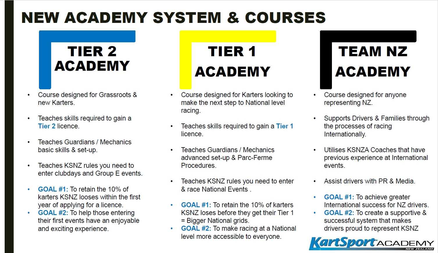 There will be 3 Academy Tiers that aim to help every karter from the Grassroots beginner all the way up to the stars of tomorrow that will represent KSNZ in International competition.