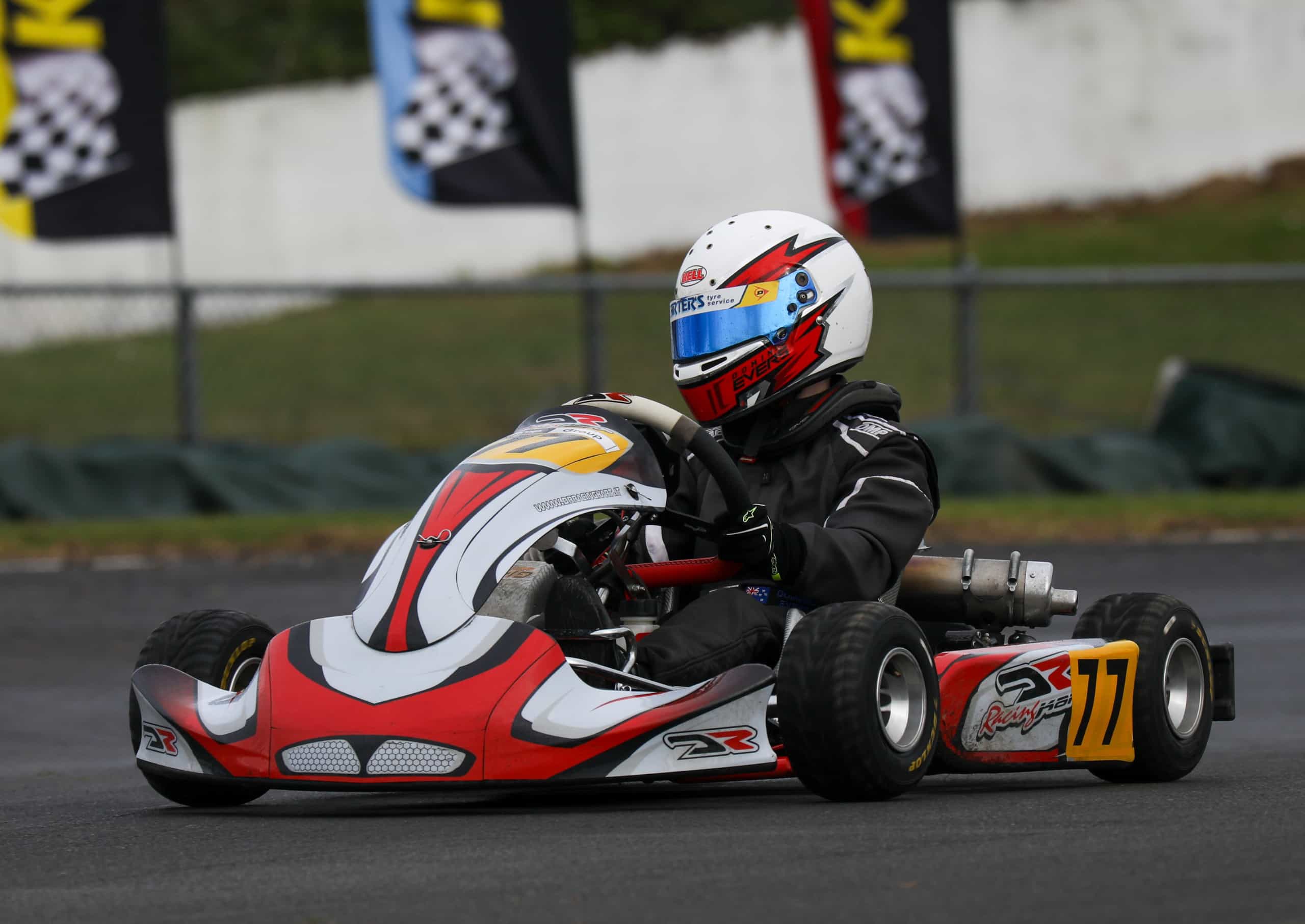 Rotax DVS Junior presented the only title to the South Island, with Christchurch’s Mac Templeton from St Bedes on the podium in three of his four heads to finish on 12 points. That was a significant six points clear of the high profile Junior Rotax national champion Kiahn Burt (Palmerston North Boys), who finished second on countback from Marco Manson, with both karters doubling up in classes.