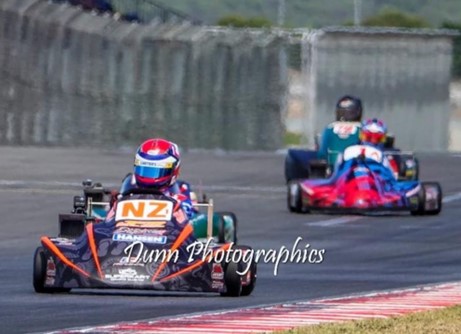 Sunday Race 3: Tyler fitted his own engine that he had bought over from New Zealand and combined with a few small changes to the kart was back into the lead by turn one. He and two other karts broke away from the pack with the lead constantly changing similar to the previous two races. He crossed the line second again. Shannon now powered by the engine that Tyler had taken off his kart had much better pace and was starting to make headway on the field.