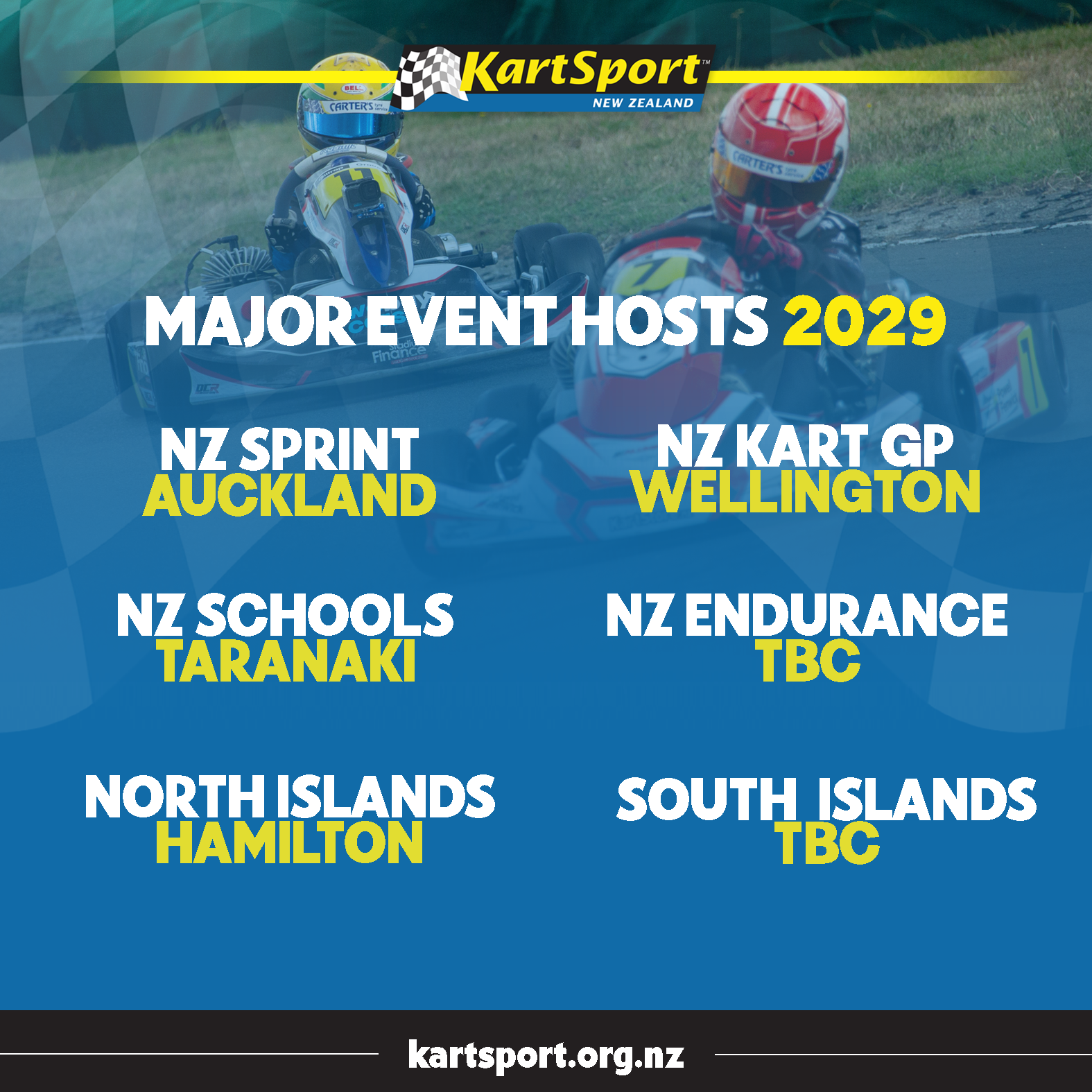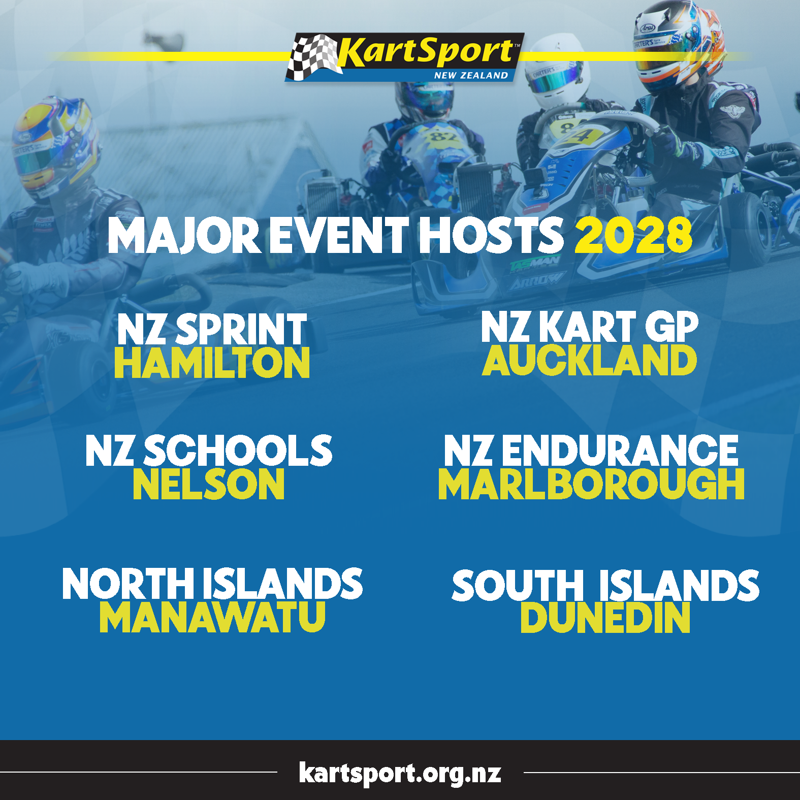 KartSport Dunedin will host the 2028 South Island Championship, with the 2029 edition TBC later following further discussions with venues. Equally, the North Island Championship should see strong events in both Manawatu and Hamilton.